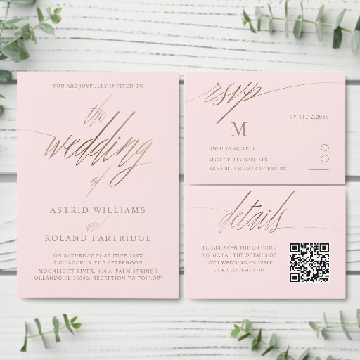 Invitation Mariage de calligraphie dorée moderne Blush Pink &