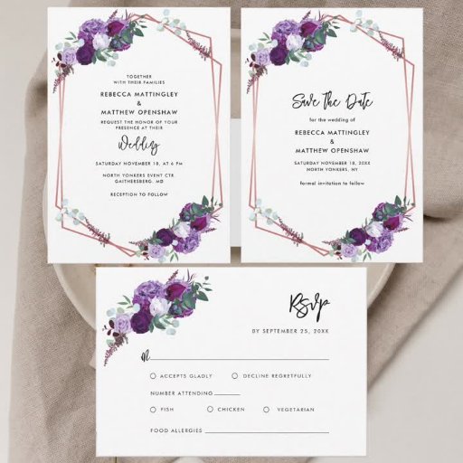 Purple Floral Rose Gold Geometric Wedding SuiteConçu par S A Holmes