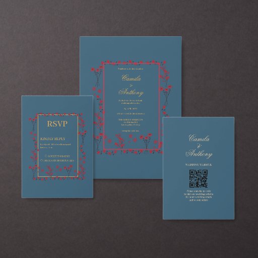 Navy Red Floral Border WeddingConçu par Dia Sha