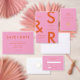 Faire-part de mariage Monogramme rose et orange moderne. Caractéristiques typographie audacieuse et design graphique minimal. Personnalisez le texte avec tous les détails de votre journée spéciale.