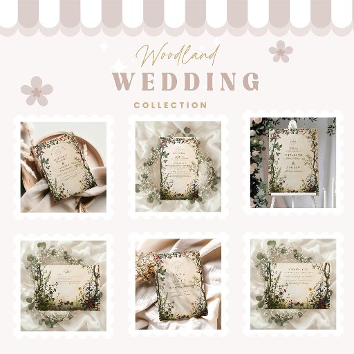 Ce design d'inspiration nature présente des branches fleurs sauvages délicates et botaniques disposées autour d'un arrière - plan de style parchemin, évoquant le charme d'un jardin boisé intemporel. Un choix parfait pour des fêtes rustiques, romantiques ou en plein air. Personnalisez-le avec vos nom, date et lieu.