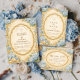 Un design de mariage côtier romantique inspiré des célébrations classiques au bord de la mer. Des hydrangeas bleus aquarelles doux, des coquillages, des détails de corde et de petites ancres nautiques encadrent une étiquette élégante à bordure festonnée sur un fond de parchemin chaud. Le style d'illustration vintage allie l'élégance d'un jardin botanique à des éléments nautiques subtils, créant une esthétique côtière raffinée parfaite pour les mariages sur la plage, les lieux côtiers et les célébrations inspirées de l'océan.