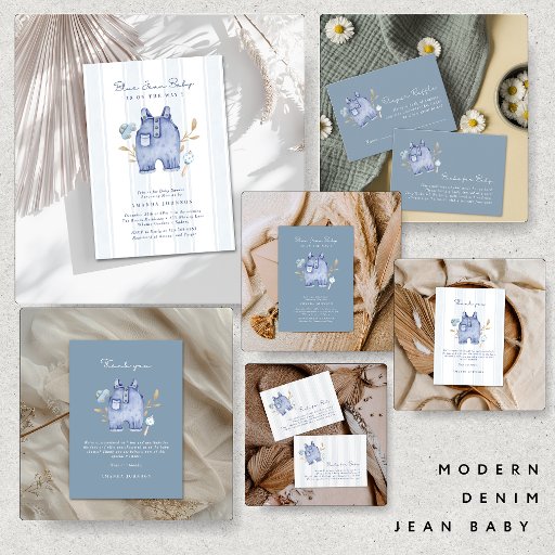 Invitation Modern Denim Blue Jean Stripes Baby Shower