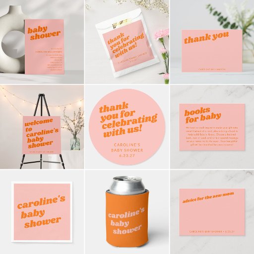 Modern Cute Pastel Pink Orange Retro Baby ShowerConçu par Opal Ellery