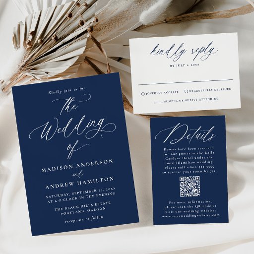 Invitation Moderne Élégante calligraphie Mariage de marine