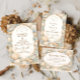 A refined coastal wedding design featuring an elegant oval wreath of seashells, oyster shells, starfish, and soft sea glass accents. Neutral sandy tones blend with muted ocean blues and delicate dune grasses to create a serene seaside aesthetic. The warm parchment background enhances the natural textures while maintaining a timeless, elevated feel. Perfect for a romantic beach celebration with classic coastal charm.