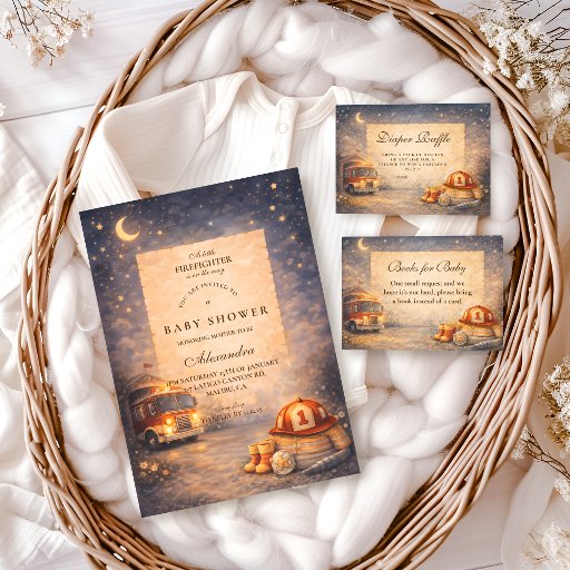 Invitation Night Sky Little Firefighter Baby Shower