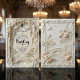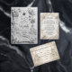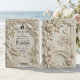 Transport your guests to a timeless era with this sophisticated design featuring a romantic garden scene in a stunning monochromatic palette.This design features a highly detailed, digitally created illustration of a formal garden landscape. The artwork simulates the look of a sculpted ivory carving or bas-relief, utilizing shadow and light to create a faux 3D appearance in shades of cream, beige, and off-white. The scene depicts a romantic bridge surrounded by lush hanging wisteria, blooming roses, and two white doves in flight. The text is presented in a stark black traditional serif paired with elegant calligraphy script for high contrast and readability against the light background.