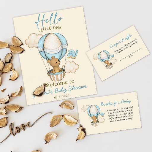Ajoutez une touche de gentillesse à votre baby shower avec l'ours mignon Hello Little One Baby shower Invitation! 🐻 💙 Doté d'un adorable ours et de tons bleus doux, cette invitation est parfaite pour une fête douce et confortable, ce qui en fait un choix idéal pour accueillir un bébé garçon.