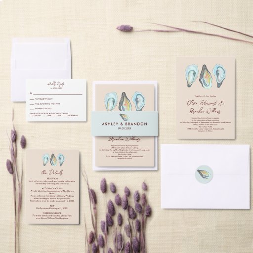 This round wedding save the date card features watercolor oysters arranged on a plate on the front, creating a coastal-inspired and artistic design. The back includes space for a QR code that links directly to your wedding website, making it easy for guests to access details with a quick scan. Blending coastal details with modern convenience, this save the date is perfect for couples planning a relaxed, contemporary celebration and coordinates beautifully with matching wedding stationery.
