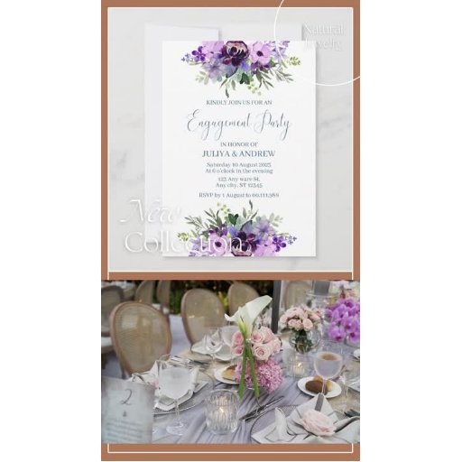 Invitation Parti d'engagement floral violet et vert