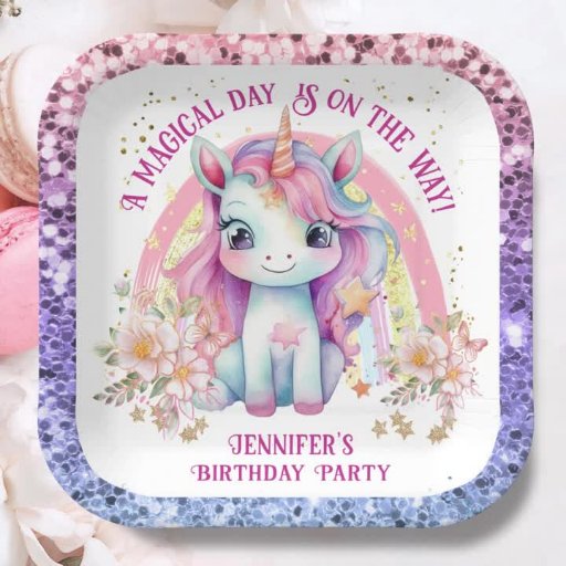 Invitation Parties scintillant Unicorne Rainbow Cupcake | 6e