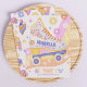 Un design ludique et rétro inspiré du roller dans la palette de couleurs rose pastel, orange, violet et jaune. Sur le devant se trouve un roller blanc avec le texte "Let's Roll" dans un script rétro avec un arc-en-ciel éclaté derrière, et sur le dos est un motif ludique et lumineux de patins à rouleaux. Customisez les détails de votre fête ! Voir l'ensemble de la collection de fêtes de correspondance.