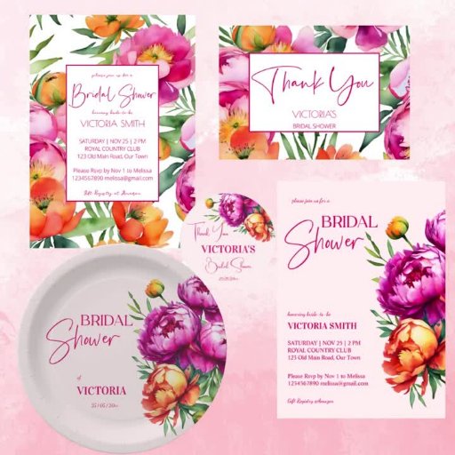 Gras rose magenta pêche orange peonées élégante douche nuptiale éditable invitation modèle téléchargement numérique instantané, couleurs vives typographie décontractée moderne