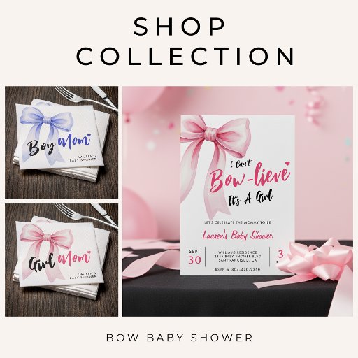 Welcome your bundle of joy in style with this pink bow baby shower invitation for baby girls. It's a fun and cute way to celebrate your daughter's big debut. Personalize it with your event details for a party that will be truly un-bow-lievable.