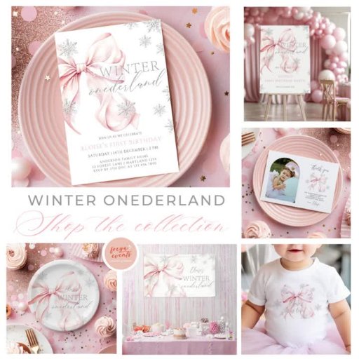 Invitation Pink Bow Winter Onederland 1er anniversaire Invita