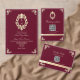 Elégante faire-part de mariage baroque bordeaux et or avec crête monographique ornée sur l'avant et code QR moderne RSVP sur l'arrière. Un mélange parfait de luxe et de commodité, cette invitation est idéale pour les mariages formels. Personnalisez facilement avec vos noms, date et site Web mariage. Les clients peuvent se rendre rapidement en scannant le code QR, en gardant l'organisation de votre événement dans le style.