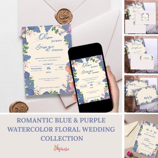 Romantic Blue & Purple Watercolor Floral WeddingConçu par Mypaperlove Designs