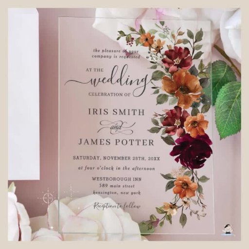 Invitation Rustique Bourgogne brûlé Orange Floral Arch Mariag