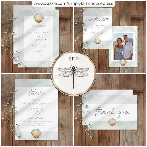 Invitation Seashell Watercolor Minimalist Beach Wedding