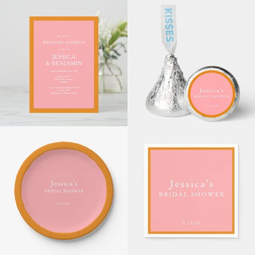 Modern Pink and Orange Colorblock Bridal ShowerConçu par Opal Ellery