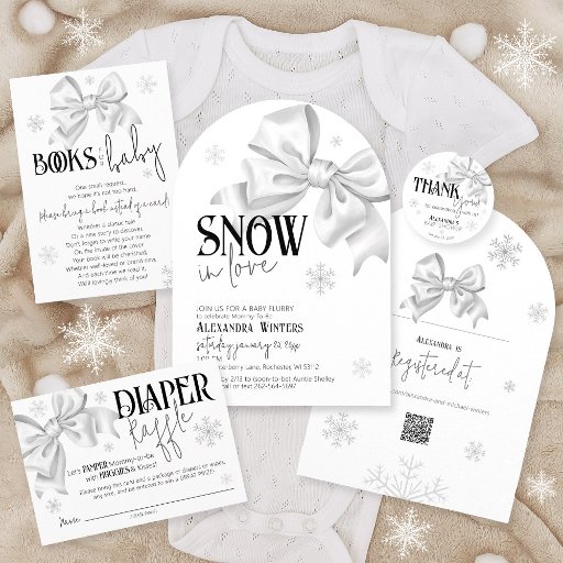 Invitation Snow In Love White Bow Baby Shower Winter Arch QR