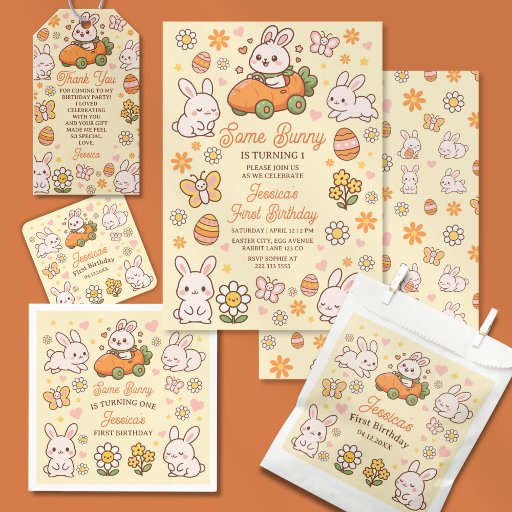Featuring a sweet bunny-themed design in soft blue tones, this charming invitation is perfect for a joyful first birthday celebration. The playful “Some Bunny Is Turning One” message adds a fun and heartwarming touch, while the gentle Easter-inspired style makes it ideal for springtime parties.