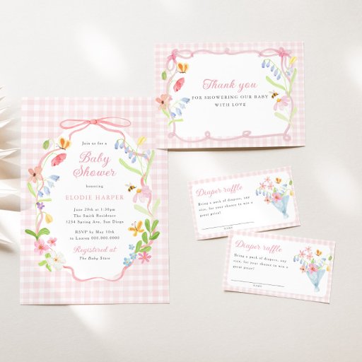 Invitation Spring Floral Pink Gingham Baby Shower