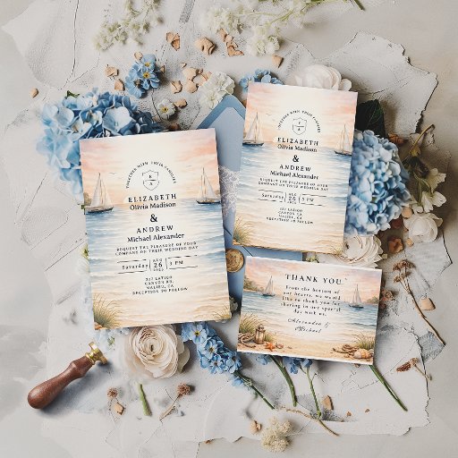 Invitation Sunset Sailboat Seaside Wedding