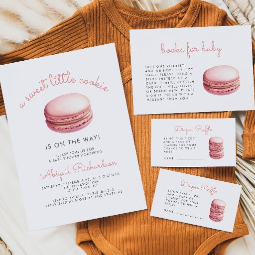 Invitation Sweet Little Cookie Macaron Baby shower fille rose