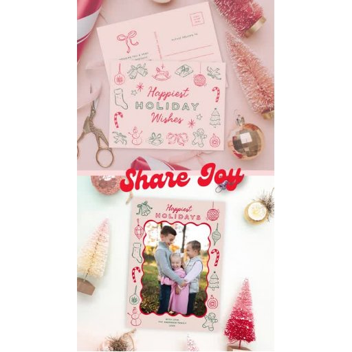 Cette invitation de fête de vacances amusante présente des illustrations fantaisistes de Noël dessinées à la main en rouge et vert foncé sur un arrière - plan rose clair. L'écriture moderne de salutation dit "Noël fête". Customisez cette conception en ajoutant une photo et/ou un texte supplémentaire au verso. Le look est amusant, moderne et festif ! CONSEIL DE CONCEPTION : Les couleurs Arrière - plans et textuelles sont personnalisables à l'aide de l'outil d'édition.