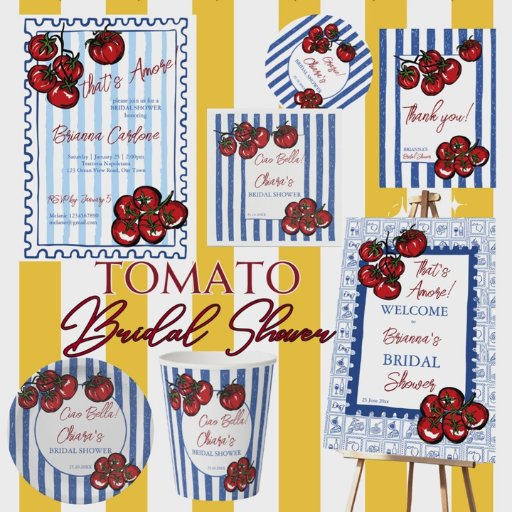 That's amore Little tomato blue post stamp border Italian bridal shower invitation cards template, farmers market bridal shower invitations, Italian bridal shower invitations, cherry tomato bridal shower invites, hand drawn tomatoes , grand millennial bridal shower