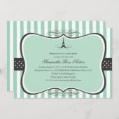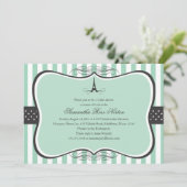 Illustration de la tour Eiffel Girly Whimsy sur le thème parisien de la douche nuptiale. Bandes vert clair (345) avec bande noire traversant verticalement (derrière le support fantaisie). J'ai choisi un stock de carton blanc de base (notez si vous n'aimez pas un léger brillant, que Basic White a, je suggère soit du lin blanc soit du carton Recyclé) Si vous avez des changements de couleur ou avez besoin d'aide en ce qui concerne le design, s'il vous plaît envoyez-moi un courriel. paula@labellarue.com