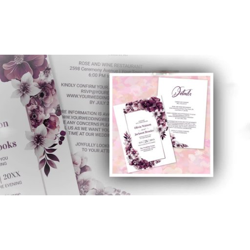 Invitation vos amis et proches à votre mariage pour assister et célébrer le début de votre voyage de toute votre vie avec cette invitation rose et prune fleurie. Le texte personnalisable vous permet d'ajouter vos noms, votre date de mariage et les détails nécessaires de votre célébration. Conçu pour le couple à faible budget, l'emplacement du lieu de réception, la demande de réponse RSVP, les détails de l'hébergement et toute autre information dont vos invités pourraient avoir besoin peuvent être inclus au verso de l'invitation, ce qui permet d'économiser de l'argent sur des articles de papeterie supplémentaires. Une variété de types de papier et de styles d'angle sont disponibles pour vos invitations uniques, ainsi que l'option de téléchargement.