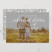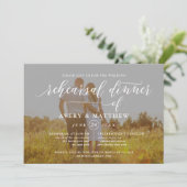 Cette invitation à dîner simple et élégante de répétition présente un agencement minimaliste avec typographie calligraphique. Personnalisez avec vos détails et votre photo dans l'arrière - plan. Vient avec un motif floral sur le dos.