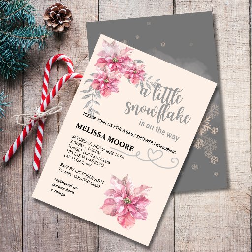 Invitation Un petit tonneau rose flocon rose poinsettia