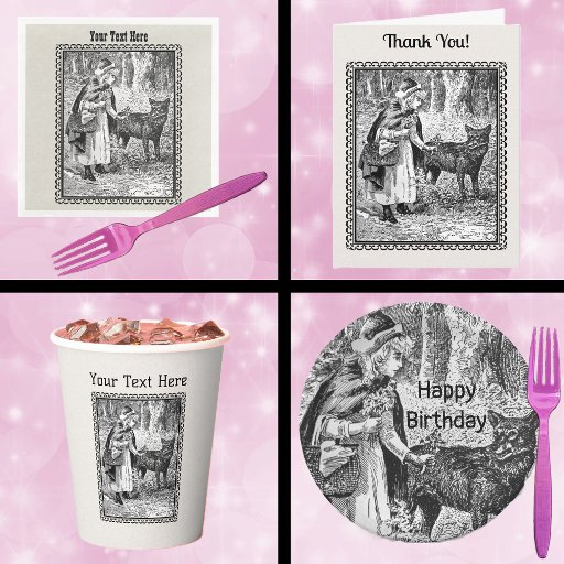 Invitation Vintage Red Riding Hood Wolf fête d'anniversaire