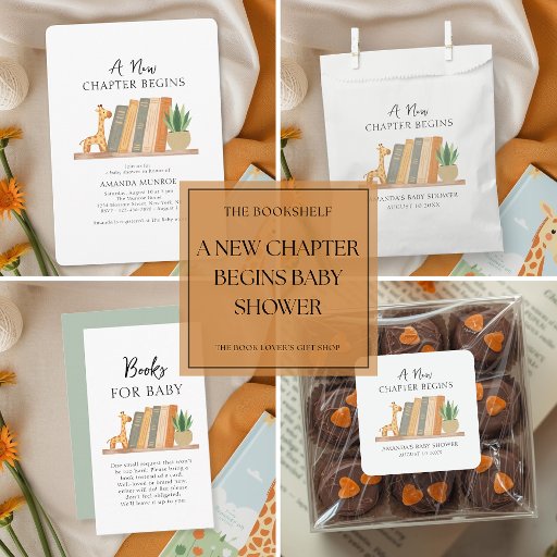For the mom-to-be. A warm, modern invitation featuring a soft watercolor bookshelf with books, a cuddly giraffe and pot plant. This gentle, gender‑neutral design celebrates the beginning of a new chapter with calm, cozy elegance. Perfect for parents who love meaningful details and a refined, minimalist aesthetic. Personalize with the inclusion of mom-to-be's name and event details.