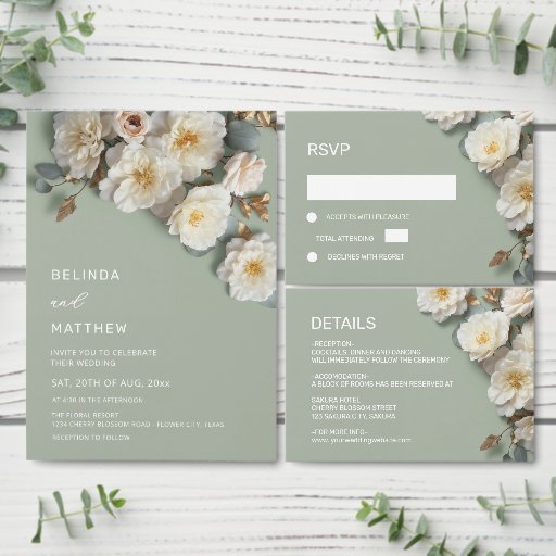 Invitation White Roses 3D Flowers Modern Arch Wedding