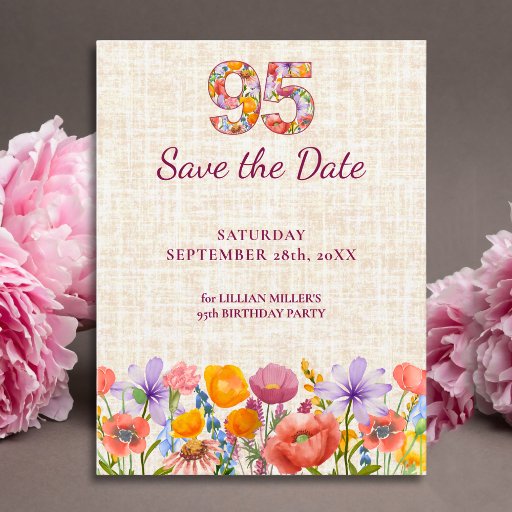 Invitation Wildflower 95th Birthday Party - Floral Number