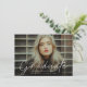 Cette combinaison moderne et élégante d'invitation à la remise de diplômes de photographie élégante comprend une superposition de script et un nom personnalisable, l'école et la photo sur le devant. L'arrière-plan offre des fêtes et des détails de l'événement avec 2 photos supplémentaires. Une excellente façon de présenter votre diplômé.