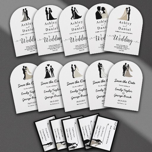 Cet élégant faire-part de mariage acrylique en arc noir et blanc est parfait pour un mariage moderne. Le design simple comprend une élégante calligraphie noire et une illustration de mariée et de mariée sur un arrière - plan transparent clair