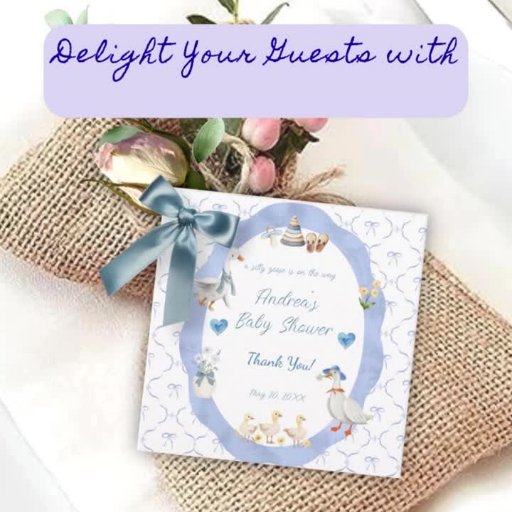 Honk! A silly baby goose is on the way! Get ready to waddle into a delightful celebration with this charming transparent acrylic "Silly Goose" baby shower invitation. Perfectly capturing the joy and whimsy of welcoming a baby boy, this invitation is sure to make your guests smile. It features hand painted blue bows, flowers, hearts, baby bottle, pacifier, stacking toy and mom, dad and baby geese too. Easily change the details to your own and if you would like to, edit the font style, color, size and placement.