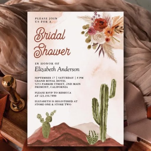 Amaze your guests with this elegant desert theme wedding invite featuring a beautiful watercolor desert landscape and rustic flowers. Simply add your event details on this easy-to-use template to make it a one-of-a-kind invitation.