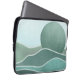 Mooie, eenvoudige en minimalistische Boho Zen-kunst, met een afbeelding van Blue Moon Over Blue Mountains, in rustige, kalmerende tinten blauw en groen, met esthetische witte lijnen voor een schoon, minimalistisch ontwerpkunstwerk.