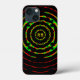 Un design graphique géométrique rayonnant et pulsant avec un thème de soleil de trou noir et une palette de couleurs rouge, vert et noir. Il est sous-titré avec du texte monogrammé et est un modèle entièrement modifiable.