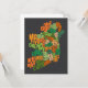 Een typografische tekaart met de graafschappen van Ierland. De schaduwen van groene en oranje tekst op een steenkoolgrijze achtergrond.