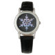 Icy, iriserend, roze, blauwe en witte sneeuwvlok, levendig tegen een zwarte achtergrond