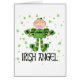 In dit schattige ontwerp van St. Patrick's Day staat een klein meisje dat in groen gekleed is met groene vleugels en de titel "Irish Angel" op een achtergrond van shamrocks.