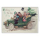 Envoyez un peu de vert à vos proches cette année. Cette impression vintage de la Saint Patrick représente une famille irlandaise conduisant dans une voiture verte ancienne.